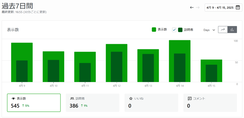 とくに、ページごとの閲覧数や流入元の確認ができるため、どの記事が読まれているか、読者がどこから来ているかの把握が容易です。