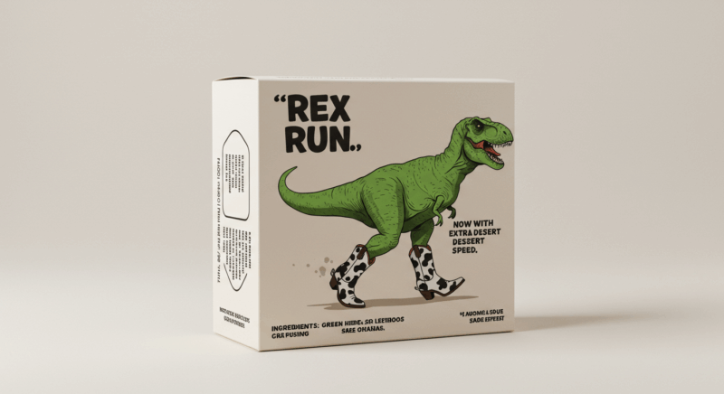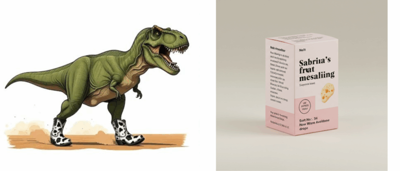 Whisk は、画像と画像を組み合わせて新しいビジュアルを生み出す「リミックス」機能に特化したツールです。例えば「恐竜」と、とある商品の「パッケージ」を組み合わせると、