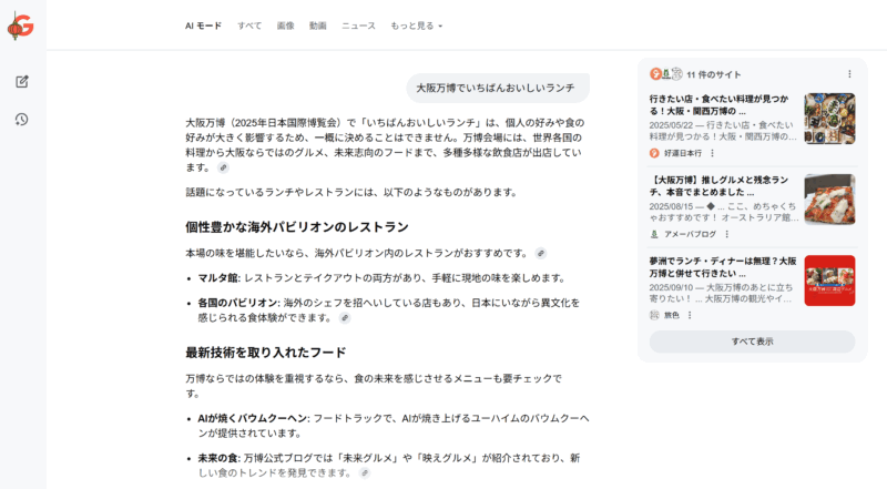 ただし、筆者が無料プランと比較して試した限りでは、大きな差を体感することはできませんでした。精度は向上しているはずですが、日常的な検索では違いが分かりにくいのが正直なところです。