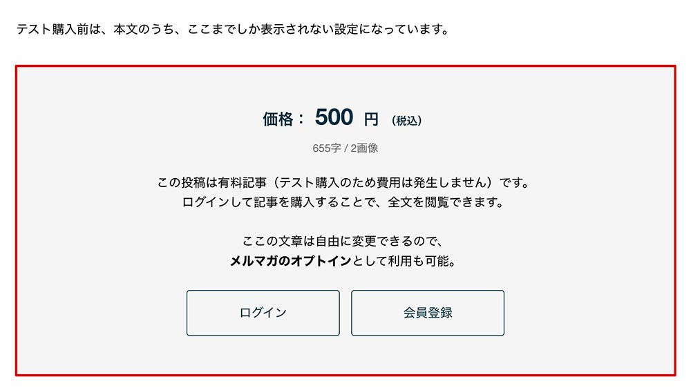 上記のように購入前のユーザーにも、有料部分の文字数や画像数が自動で表示されるようになっています。