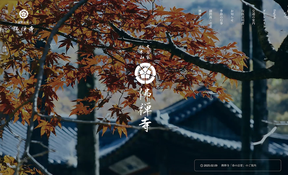 境内の写真や行事の様子を通して、お寺の空気感や季節感が伝わるホームページです。