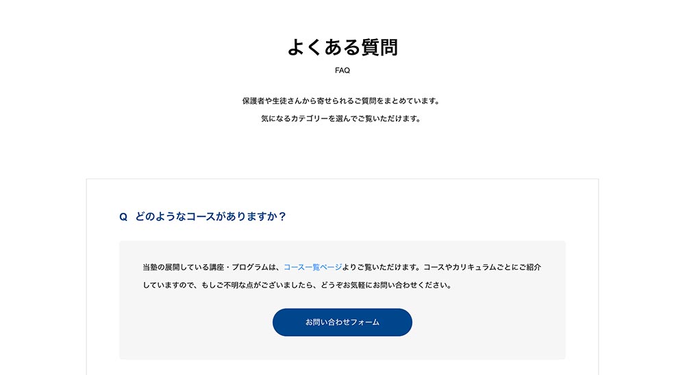 塾生や保護者の方から寄せられる「よくある質問」を掲載しておける機能です。