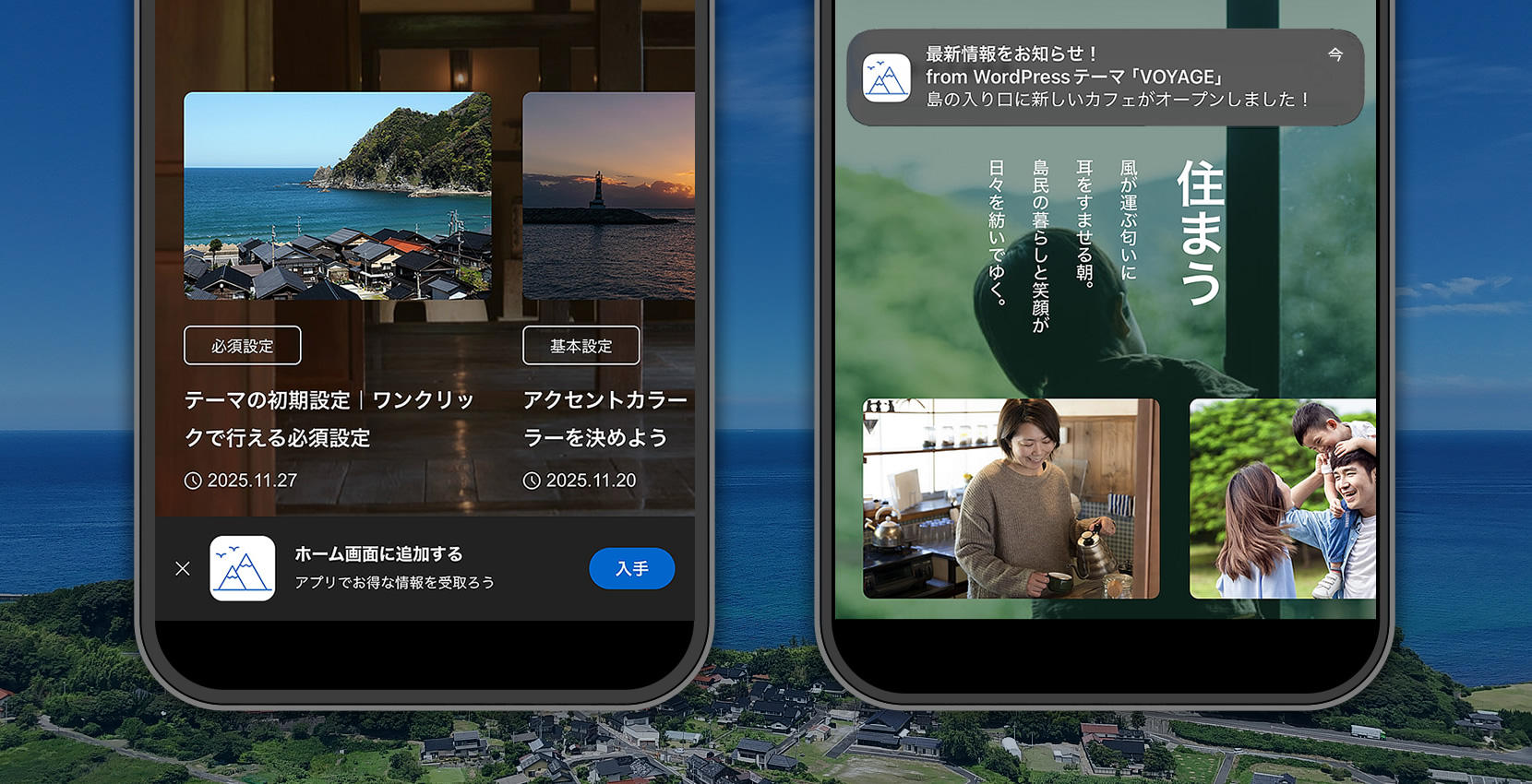VOYAGEはPWAに対応しているWordPressテーマなので、アプリっぽい挙動を実現することが可能です。設定も簡単で、付属プラグインをインストールすることで、サイトのPWA化が可能です。